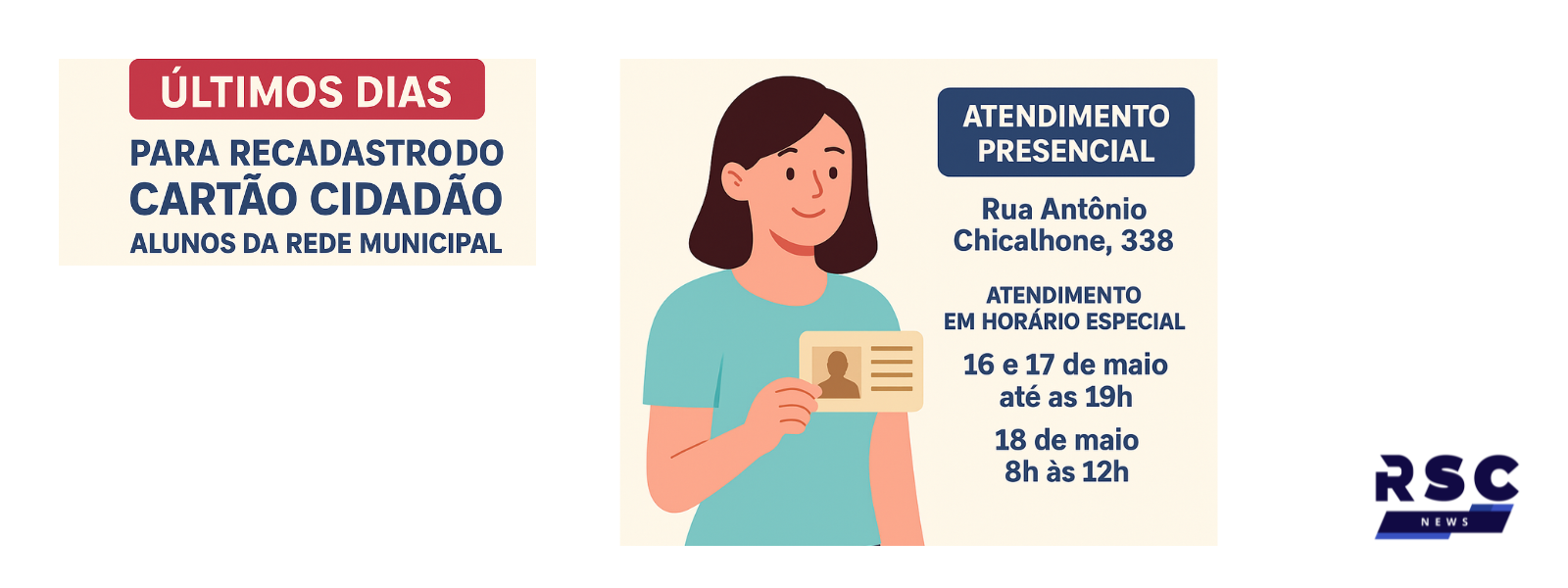 A Prefeitura de Louveira reforça que estão nos últimos dias o período de recadastramento do Cartão Cidadão para os alunos da rede municipal. Esse documento é essencial para garantir a matrícula ou rematrícula dos estudantes em 2026. Prefeitura de Louveira